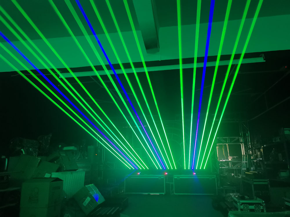 激光效果: 激光天网光束表演,激光流水线条效果,激光频闪效果